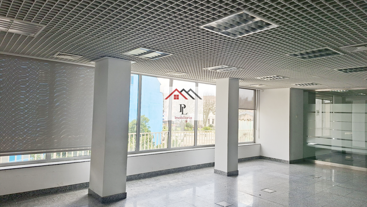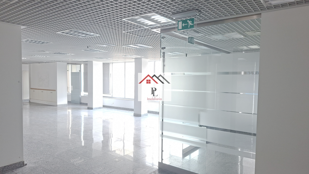 A fração, com uma área total de 333,95 m², destina-se a comércio e serviços, sendo composta por entrada, ampla zona de atendimento, gabinete, arquivo, instalações técnicas, copa e instalações sanitárias.